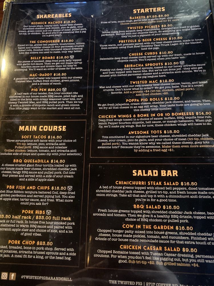 Twisted Pig Bar and Grill Menu (Update 2025)